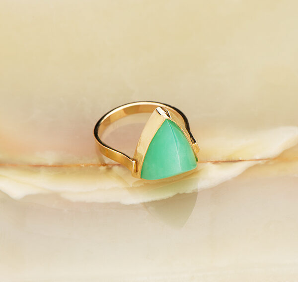 Deze ring is massief goud 18 kt met een kevertje geslepen uit toermalijn.
